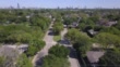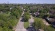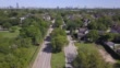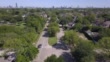 Aerial of suburban street, city skyline in background - Video stock 4K