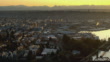 Aerial shot of Salmon Bay, Fremont Canal, Ballard, and Fremont at Sunrise in Seattle, Washington