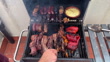 Uomo argentino che prepara costolette di roast beef affumicate al barbecue. Asado tradizionale argentino. - Video stock 4K