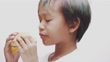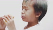 4K footage Close-up front view, Portrait Asian boy eating hamburger with deliciousness on white background.