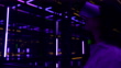 Adolescente asiatica che indossa cuffie per la realtà virtuale e gesticola mentre tocca l'aria durante l'esperienza VR in un'illuminazione UV colorata nella notte buia. Realtà virtuale, visualizzazione del concetto 5G. - Video stock 4K