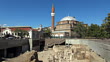 Looking across an ancient Roman archaeological site at the 16th century Banya Bashi Mosque in downtown Sofia, Bulgaria. Across the street is the Central Market.