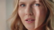 Beautiful woman having smooth healthy skin. Close-up portrait of attractive female with gray eyes. She is having perfect complexion.