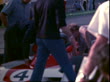 Billboards ("Indianapolis 500 Awards Over One Million Dollars") over electronic lap board at Indianapolis Motor Speedway / Joe Leonard driving Indy racer 1, David Hobbs driving Carling Indy race car 73, AJ Foyt driving Indy racer 14, Mario Andretti driving Viceroy Indy race car 11 / Panning level / Bobby Unser driving Olson ITE Eagle Indy racer 8 / Indy racers 4, 12 racing / Jim Bob's Flying Circus Volkswagen Beetle (VW Bug)-- painted blue and red, old USAF star emblem on door / pit crew talking with driver BOBBY ALLISON seated in car / pit crew talking with MARIO ANDRETTI seated in car / Indy race cars on otherwise empty racetrack, empty spectator stands. Indianapolis 500 Pre Race on March 28, 1973 in Indianapolis, Indiana (Footage by Getty Images)