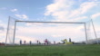 Giovane giocatore nero che festeggia di aver segnato un calcio di rigore mentre i compagni di squadra alzano le braccia eccitati durante una partita di calcio - Video stock 4K