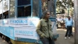 Bollywood director Imtiaz Ali gesture along with the cast and crew of his film “My Melbourne” board heritage Tram during the promotion before the screening at 30th Kolkata International Film Festival KIFF in Kolkata, India, on December 6, 2024 (Footage by Rupak De Chowdhury/NurPhoto via Getty Images)