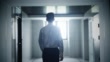 Uomo d'affari che cammina lungo il corridoio buio - Video stock 4K