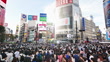 Busy crowded Japanese people, tourist visitor, traveler walk cross road at Shibuya scramble crossing on Tokyo summer day. Japan tourism landmark, Asia travel destination, pedestrian transportation