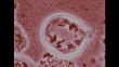 Cells divide under a microscope filmed in time lapse in the 1960s.