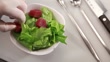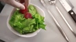Le mani dello chef in cucina preparano l'insalata di tonno rosso - Video stock HD