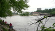 City scene of Minneapolis, Minnesota during the day. Scene from Minnehaha Park of the Mississippi River with the Ford Bridge in the background.