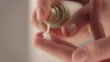 Close-up handheld shot of woman squeezing cream on fingers. Female is representing healthy wellbeing. She is using beauty product.