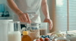Closeup of young Asian man preparing protein shake at modern home. Diet and healthy food morning routine. - Video stock 4K
