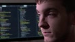 Computer hacking / dark web: black market in personal data; Set-up shots of Cal Leeming (Former Compuer Hacker) working at computer/Close shot of computer screen showing blurred shots of binary code (?)/Cal Leeming interview SOT