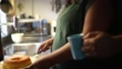 Coppia che abbraccia e affetta pudim a casa - Video stock 4K