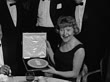 Dora Bryan shows off her award at the British Film Academy Awards. 1961.