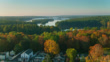 Aerial establishing shot of Scituate, a small town in Providence County, Rhode Island on a clear morning in autumn.