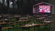 BERLIN, GERMANY - JUNE 29: Empty beer garden after fans departed during heavy thunderstorm prior watching the game and score 2:0 for England on the UEFA EURO 2020 Round of 16 match between England v Germany at Wembley Stadium in London on June 29, 2021 in Berlin, Germany. All persons are only eligible for the event organized by HauptstadtWiesn with a current Corona negative test or complete proof of vaccination or proof of recovery. Due to Covid-19 pandemic no official fan zones are organized in Germany and there are still restrictions in place. Therefore public viewing at UEFA EURO 2020 is different to other tournaments. (Footage by Christian Ender/Getty Images)