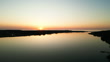 Experience serene aerial sunrise over calm river with golden horizon, capturing breathtaking natural landscape - Video stock 4K