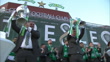 McGregor and Postecoglou hold trophies aloft at Celtic treble celebration