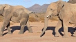 A couple of elephants are walking together in South Africa as the female repeatedly reaches under the male and puts her trunk around the male's penis and engulfs it while never missing a stride in their walk.