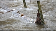 Flood water on the river Rothay during torrential rain in Ambleside, Lake District, Cumbria, UK. - Video stock HD