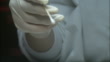 A forensic scientist uses a cotton swab to to take a sample from a boot. - Video stock HD