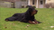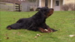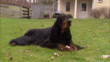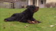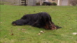 A Gordon Setter chews on a bone, then barks. - Video stock HD