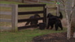 A Gordon Setter runs along a fence with two dogs on the other side. - Video stock HD