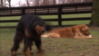 A Gordon Setter stands and barks as a Golden Retriever rests nearby. - Video stock HD