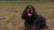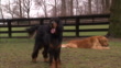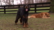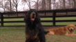 A Gordon Setter stands and barks as a Golden Retriever rests nearby. - Video stock HD