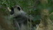Gray langur monkey sitting on a branch eating, Sri Lanka 2017