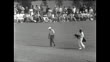 Huge crowd at the Augusta National Golf Club where the 1967 Masters Tournament is underway / CU Jack Nicklaus / cut at 36th hole and walks off with caddy / CU Julius Boros makes the hole / Bobby Nicholes gets a birdie / Nichols raises arms happy at his shot / CU Ben Hogan walking up to the 18th hole / audience give him standing ovation / Hogan gets 20 foot birdie / Julius Boros, Bobby Nichols and Bert Yancey stand together for cameras / final day of play / CU Bert Yancey misses putt / CU Gay Brewer as he makes the hole / Brewer is winner and receives Masters jacket.