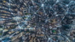 Hyperlapse top view smart city wireless network signal data transmission high speed and connection of Hong Kong business district