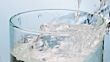 Cubetti di ghiaccio che cadono nel vetro dell'acqua - Video stock HD