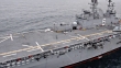 AT SEA - SEPTEMBER 10: In this handout footage provided by U.S. Department of Defense, The future amphibious assault ship USS America (LHA 6) participates in a photo exercise while underway in the Atlantic Ocean. America is currently traveling through the U.S. Southern Command and U.S. 4th Fleet area of responsibility on her maiden transit, "America Visits the Americas." America is the first ship of its class, replacing the Tarawa-class of amphibious assault ships. As the next generation "big-deck" amphibious assault ship, America is optimized for aviation, capable of supporting current and future aircraft such as the MV-22 Osprey and F-35B Joint Strike Fighter. (Footage by U.S. Department of Defense/Milmotion via Getty Images)