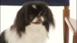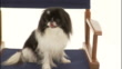 A Japanese Chin dog sits in a director's chair. - Video stock HD