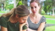 4k video footage of a young woman comforting her friend while sitting on a bench