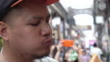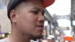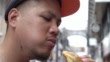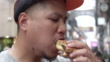 Uomo che mangia croissant Taiyaki (torta giapponese a forma di pesce). - Video stock 4K