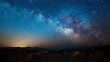 Time lapse shot of starry night sky with milky way moving over the arid desert landscape of Death Valley in southern California - USA. Arrowweed (Pluchea Sericea) of the Devils Cornfield in the foreground.
