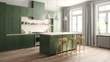 Modern Kitchen Interior with Green Cabinets and Large Island - Video stock 4K