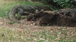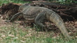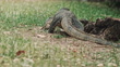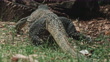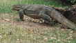 Monitor lizard crawling on green grass