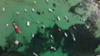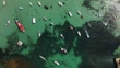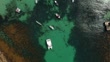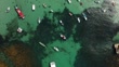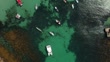 Aerial video from a drone captured in August 2023 of a collection of moored boats at St Agnes Island, Isles of Scilly, Cornwall, UK.