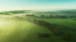 Drone flight over beautiful rural scenery blanketed in morning fog in Alabama, southeast of Montgomery.