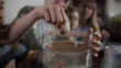 Kids ae arranging the soaked seeds evenly in the sprouter.