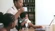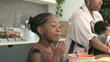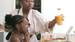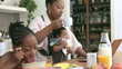 Madre nera multi-tasking con i bambini in cucina - Video stock 4K