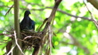 Piccione nicobare che si schiude nel nido sui rami della foresta. - Video stock 4K