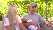 Paris 2024 Olympic Games: Amber Rutter interview; ***OLYMPIC RINGS VISIBLE – MAY BE SOLD FOR EDITORIAL PURPOSES ONLY *** FRANCE: Paris: EXT James Rutter (husband) interview, holding baby Tommy Rutter, alongside Amber Rutter (Skeet shooting silver medallist)