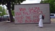BERLIN, GERMANY - MAY 15: People walk past a wall with pro Palestinian slogans written on it during a demonstration to commemorate the 77th anniversary of the Nakba on May 15, 2025 in Berlin, Germany. The Nakba refers to the violent expulsion by Jewish paramilitaries and, following the creation of the state of Israel, by the Israeli military of approximately 750,000 Palestinian Arabs from their lands in 1948 in what was then Mandatory Palestine. Today's commemorations are taking place as many Palestinians in Gaza face starvation due to the Israeli blockade of humanitarian assistance. (Footage by Craig Stennett/Getty Images)