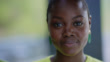 CU. Portrait of a confident businesswoman looking up at the camera.